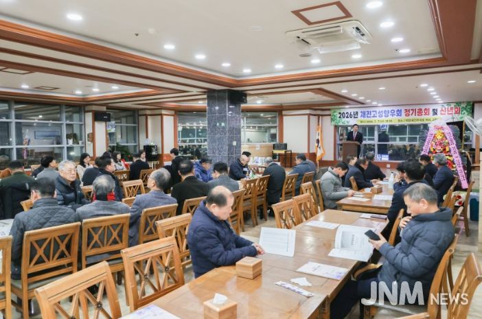 제이앤엠뉴스 | 고성군은 재진주고성향우회(회장 김길수)가 1월 7일, 경남 진주시 피앙세뷔페에서 2026년 정기총회 및 신년회를 개최했다고 밝혔다.