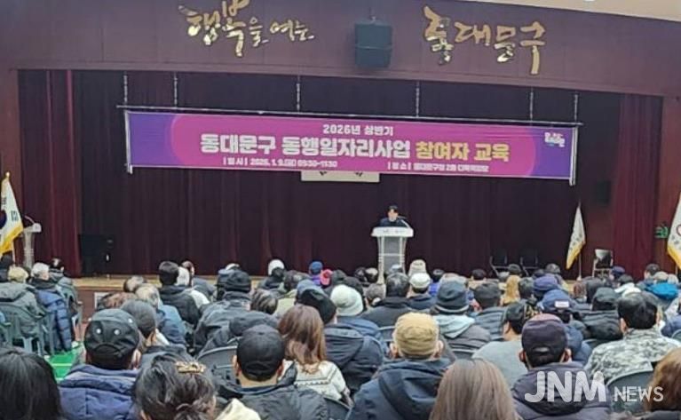 제이앤엠뉴스 | 서울 동대문구는 지난 9일 구청 2층 다목적강당에서 ‘2026년 상반기 동행일자리사업’ 참여자 302명을 대상으로 성희롱 예방 및 산업안전보건 집합교육을 실시하고, 같은 날부터 본격적인 근무에 들어간다고 밝혔다. 구는 “현장에 배치되기 전 기본 교육을 통해 참여자의 권익을 보호하고 안전 수칙을 숙지시키는 데 초점을 맞췄다”고 설명했다.