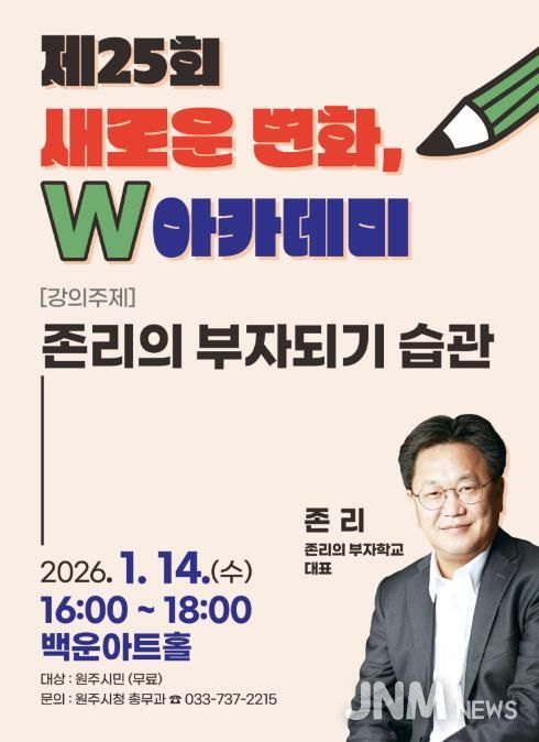 제이앤엠뉴스 | 원주시는 오는 14일 오후 4시, 백운아트홀에서 ‘제25회 새로운 변화, W아카데미’를 개최한다.