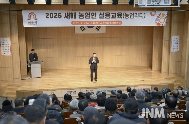 제이앤엠뉴스 | 공주시는 지난 9일 농업기술센터 대강당에서 이장과 농업인학습단체 임원 및 교육을 희망하는 농업인 등을 대상으로 2026년 새해 농업인 실용교육 ‘농업리더 특별과정’을 실시했다.