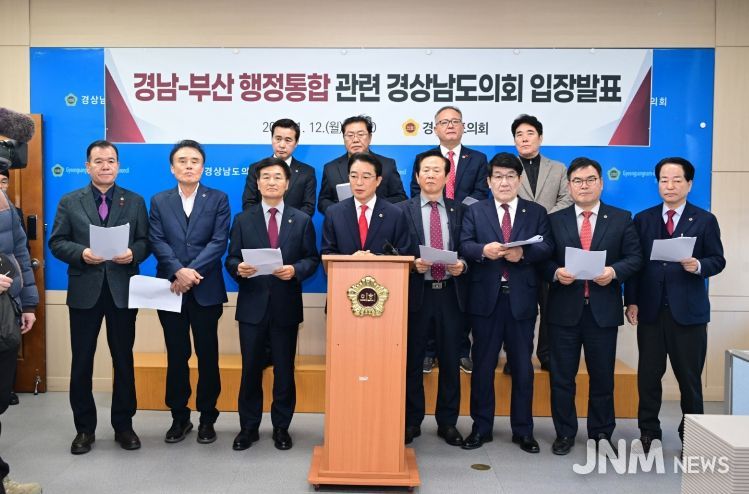 제이앤엠뉴스 | 경상남도의회는 1월 12일, 도의회 브리핑룸에서 기자회견을 열고, 현재 추진 중인 경남·부산 행정통합 논의와 관련해 통합의 방향성에는 공감하되, 성급한 추진에 대해서는 신중한 접근이 필요하다는 공식 입장을 밝혔다.