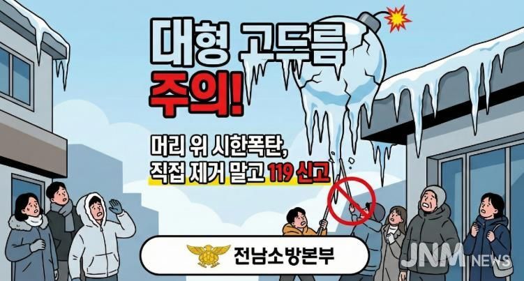 제이앤엠뉴스 | 전남소방본부는 12일, 최근 기온 급강하와 상승이 반복되면서 도심 건물과 주택 처마 등에 생긴 대형 고드름으로 인한 안전사고 주의를 당부했다.