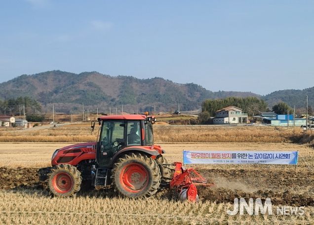 제이앤엠뉴스 | 해남군이 왕우렁이 월동방지를 위한 철저한 논 말리기와 깊이갈이를 실천하기 위해 농가 현장지도에 나서고 있다.