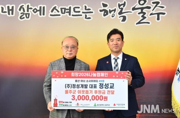 제이앤엠뉴스 | ㈜정성개발이 12일 울주군에 지역 저소득세대를 위한 성금 300만원을 전달했다.