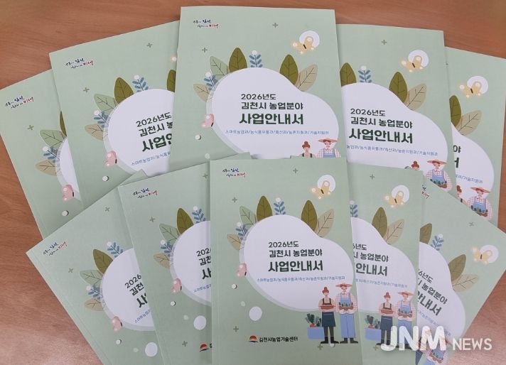 제이앤엠뉴스 | 김천시는 2026년도 김천시농업기술센터에서 추진하는 농업분야 지원사업의 사업내용과 신청정보를 담은 ‘2026년도 김천시 농업분야 사업안내서’를 제작하여 읍면동 행정복지센터 및 지역농협에 배포했다고 12일 밝혔다.