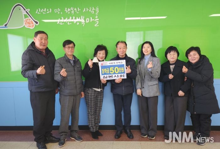 제이앤엠뉴스 | 심(心)봉사회(회장 이기수)는 지난 1월 9일 신선동 행정복지센터에 지역 인재 육성을 위한 사랑의 장학금을 전달했다.