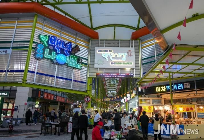 중소벤처기업부의 문화관광형시장 육성사업에 참여 중인 백년시장은 1년 차 사업으로 야시장 운영을 중심으로 한 특화 프로그램을 추진했다. 네온사인과 미러볼, 모바일 DJ부스 등을 활용한 레트로 콘셉트의 공간 조성과 야시장 메뉴 개발 콘테스트 등을 통해 시장 방문 유도와 경쟁력 제고에 나섰다.
