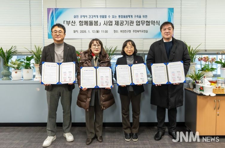제이앤엠뉴스 | 부산 부산진구는 지난 12일 ▲부산진시니어클럽 ▲부산진지역자활센터 ▲한국치매돌봄협동조합과 ‘부산, 함께돌봄’ 사업의 상호협력체계 구축을 위한 업무협약을 체결했다.