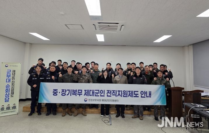 제이앤엠뉴스 | 국가보훈부 인천보훈지청 제대군인지원센터(센터장 서경민)는 1월 13일 육군 수도군단 제1019부대 5년 이상 복무한 중장기복무 전역예정군인을 대상으로 ‘제대군인 전직지원 사업 홍보를 위한 찾아가는 군부대 순회교육’을 실시 했다. ‘찾아가는 군부대 순회교육’은 제대군인지원센터가 각 군부대와의 협조를 통해 교육 접근성과 참여율을 높이기 위해 군부대 내에서 직접 제대예정군인 전직지원제도와 국가보훈제도를 소개하는 프로그램이다.