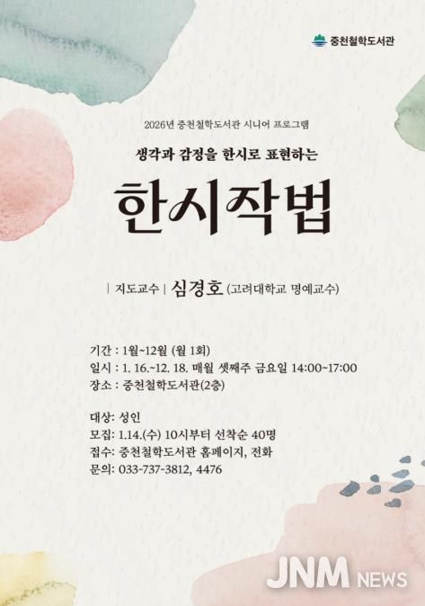 제이앤엠뉴스 | 원주시 중천철학도서관은 어르신을 위한 인문 프로그램으로 한시를 통해 생각과 감정을 표현하는 ‘한시작법’ 강좌를 운영한다.