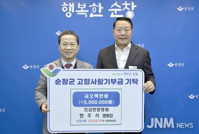 제이앤엠뉴스 | 의성한방병원을 운영하는 한주석 병원장이 최근 순창군을 방문해 500만원의 고향사랑기부금을 전달했다.