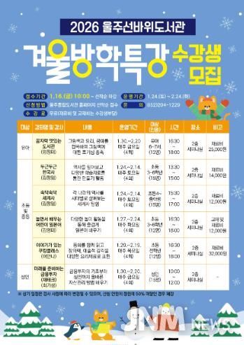 제이앤엠뉴스 | 울주선바위도서관이 겨울방학을 맞아 오는 24일부터 겨울방학특강을 운영한다고 15일 밝혔다.