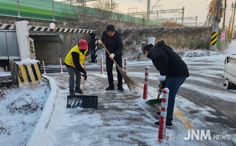 대설주의보가 해제된 이후에는 ‘도로 살얼음(블랙아이스)’으로 인한 안전사고가 발생하지 않도록, 새벽 시간에 살포기, 굴삭기 등 장비를 동원한 제거 작업을 집중적으로 진행했다.