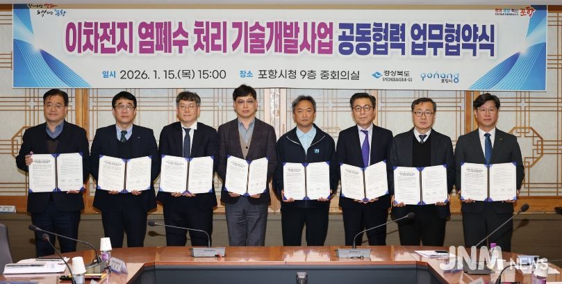 제이앤엠뉴스 | 경상북도는 15일 포항시청 중회의실에서 이차전지 산업의 난제로 꼽히는 염폐수 처리 기술개발을 위한 업무협약(MOU)을 체결했다.