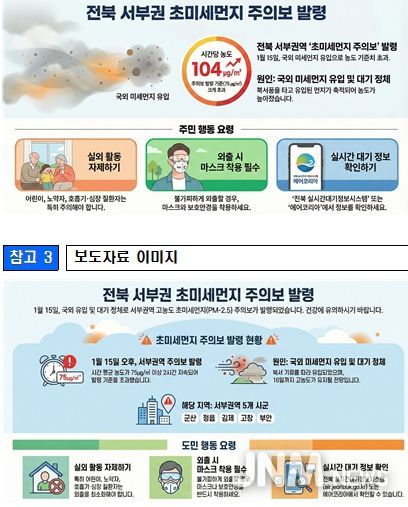 제이앤엠뉴스 | 전북특별자치도 보건환경연구원은 1월 15일 오후 국외 미세먼지 유입의 영향으로 초미세먼지(PM-2.5) 주의보를 발령했다.