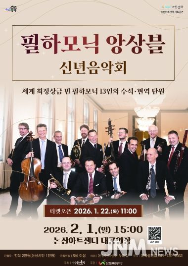 제이앤엠뉴스 | (재)논산문화관광재단은 오는 2월 1일 오후 3시, 논산아트센터 대공연장에서‘필하모닉 앙상블 신년음악회’를 개최한다고 전했다.