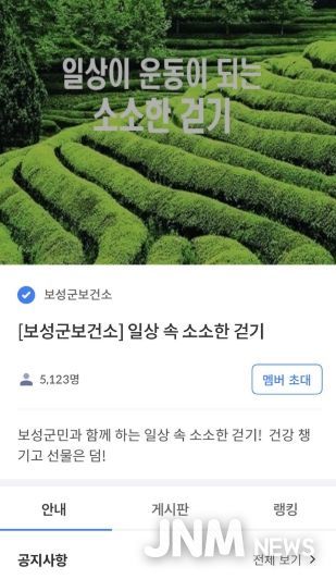 제이앤엠뉴스 | 보성군은 2026년 한 해 동안 군민 누구나 참여할 수 있는 모바일 앱 활용 비대면 건강 증진 프로그램인 ‘소소한 걷기 챌린지’를 연중 운영한다고 밝혔다.
