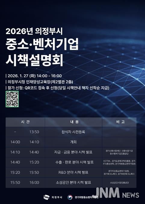 제이앤엠뉴스 | 의정부시는 1월 27일 시청 인재양성교육장에서 ‘2026년 중소‧벤처기업 시책설명회’를 개최한다.