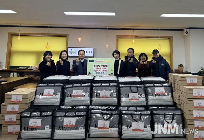 제이앤엠뉴스 | 의정부시 송산2동주민센터는 1월 15일 성약교회가 겨울이불 및 과일바구니 25세트를 기탁했다고 밝혔다.