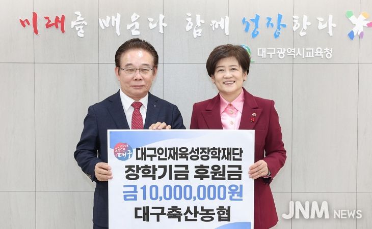 제이앤엠뉴스 | 대구시교육청은 1월 16일, 대구축산농협(조합장 최성문)에서 대구인재육성장학재단에 장학금 1천만 원을 기탁한다고 밝혔다.
