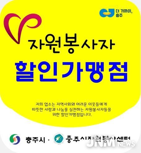 제이앤엠뉴스 | 충주시자원봉사센터는 지역사회 나눔 활성화를 위해 지역 업체와 협약을 맺고, 자원봉사자에게 할인 혜택을 제공하기 위해 자원봉사자 할인가맹점을 연중 상시 모집하고 있다.