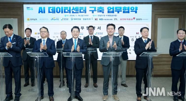 제이앤엠뉴스 | 전라남도는 16일 장성군·강진군, 민간 참여 기관과 함께 ‘AI 데이터센터 구축을 위한 업무협약’을 했다.