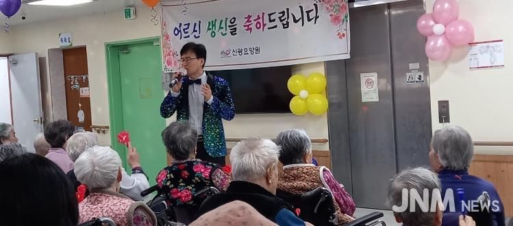실제 이날 신광요양원에서 어르신 정서 지원을 위해 '찾아가서 함께하는 효사랑 잔치'를 열고, 율동과 웃음치료, 건강 박수 배우기 등을 진행했다.