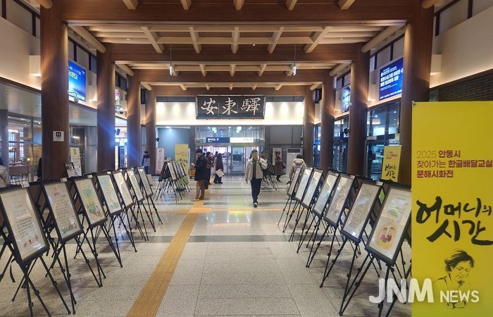 제이앤엠뉴스 | 안동시는 성인문해교육 학습자들의 배움의 결실을 시민과 공유하기 위해 성인문해교육 시화전 ‘어머니의 시간’ 2차 전시를 1월 15일부터 2월 7일까지 KTX 안동역 로비에서 개최한다.