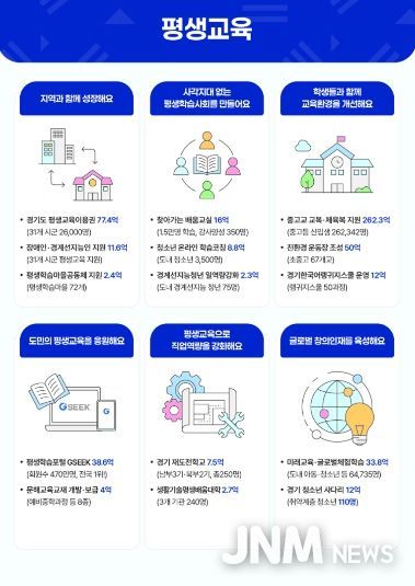 제이앤엠뉴스 | 경기도가 올해 취·창업 실패 후 재도약을 원하는 사람들을 위한 ‘재도전학교’, 학습 취약계층에 학습 기회를 지원하는 ‘평생교육이용권’, ‘찾아가는 배움교실’ 등 다양한 평생교육 사업을 추진한다.