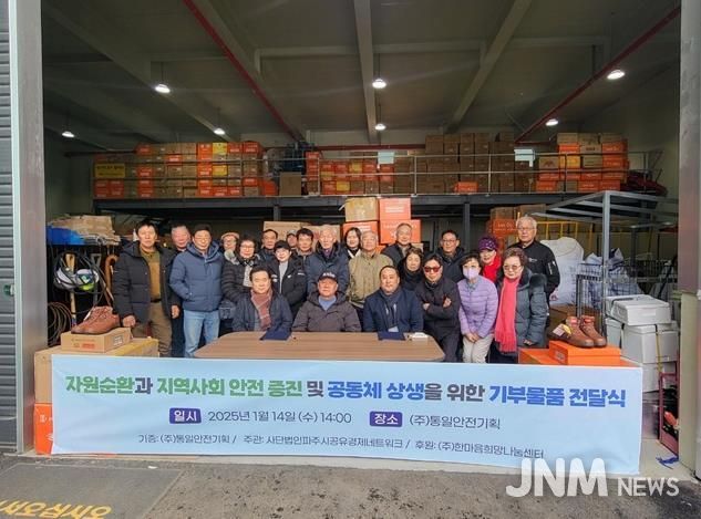 제이앤엠뉴스 | 파주시는 지난 14일, 사회적기업 ㈜통일안전기획이 기부한 안전화 3,000켤레를 ㈔파주시공유경제네트워크가 지역 수요에 맞춰 배분하는 전달식을 진행했다고 밝혔다.