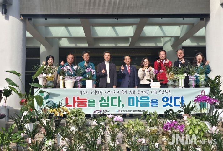제이앤엠뉴스 | 통영시지역사회보장협의체(공공위원장 천영기, 민간위원장 배은영)는 지난 15일 공직자들이 받은 축하 화분을 지역사회 취약계층과 나누는 '통영시 공직자와 함께하는 축하화분 나눔 프로젝트 ‘나눔을 심다, 마음을 잇다’'행사를 진행했다.