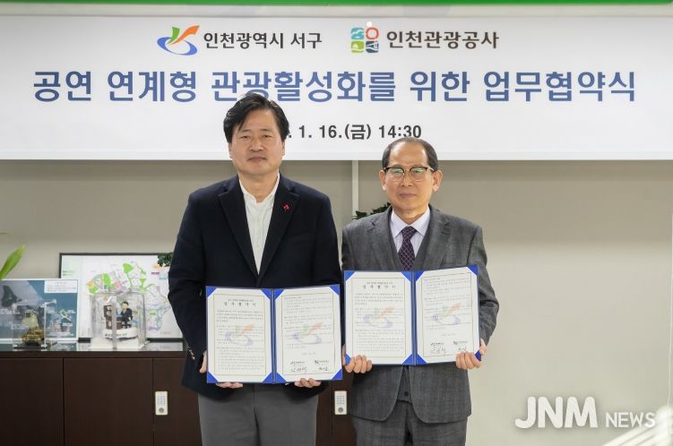 제이앤엠뉴스 | 인천 서구는 지난 16일 인천관광공사(사장 유지상)와 ‘공연 연계형 관광 활성화를 위한 업무협약’을 체결했다고 밝혔다.