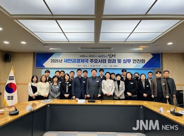 제이앤엠뉴스 | 김제시는 새만금경제국(국장 강기수)이 19일, 2026년 주요사업의 성공적인 추진을 위해 경제진흥과, 투자유치과, 새만금전략과, 체육진흥과, 해양항만과의 부서장을 포함한 팀장들이 모여 전략회의를 진행했다고 밝혔다. 이번 회의는 2026년 주요사업의 추진 방향과 전략을 점검하고, 부서 간 협력 방안을 논의해 새만금경제국의 개발사업 및 정책사업의 효율적 추진을 도모하는 데 목적이 있다.