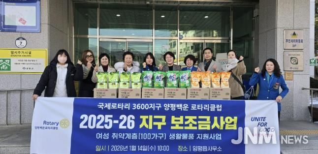 이번 기부는 2025~2026 국제로타리 3600지구 보조사업을 통해 마련된 것으로, 여성 가정의 일상생활에 실질적인 도움이 될 수 있도록 주방·세탁 세제로 구성됐다. 기부 물품은 양평읍을 통해 지원 대상 가정에 순차적으로 전달될 예정이다.