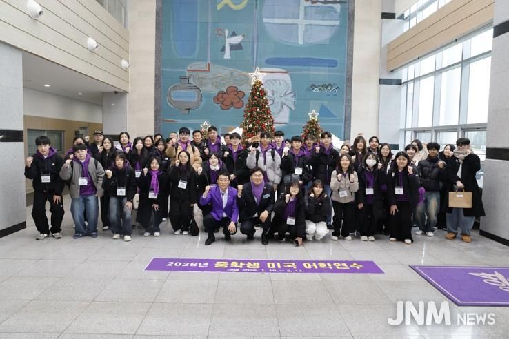 제이앤엠뉴스 | 신안군과 (재)신안군장학재단은 관내 중학교 2학년 12명, 3학년 14명 등 총 26명을 대상으로 미국 워싱턴주 어학연수를 추진, 1월 19일 시애틀로 출국했다고 밝혔다.