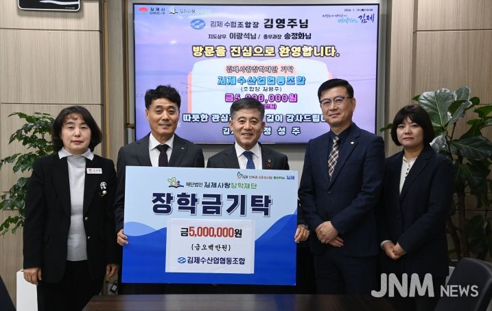 제이앤엠뉴스 | 김제사랑장학재단은 19일 김제수산업협동조합(조합장 김영주)과 새만금장례식장(대표 김덕운)이 지역 인재 육성을 위한 장학금으로 각각 500만 원과 300만 원을 기탁했다고 밝혔다.