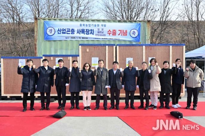 제이앤엠뉴스 | 충북농업기술원은 1월 19일, 청주시 소재 농업회사법인 엔토모에서 국내 기술로 개발된 산업곤충 사육장치로는 최초로 공식 해외 수출에 성공하며 대한민국 곤충 산업의 글로벌 시장 진출이라는 새로운 이정표를 세웠다.