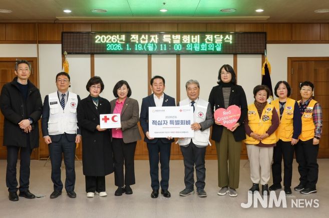 제이앤엠뉴스 | 의정부시의회는 19일 의원회의실에서 대한적십자사 경기도지사(회장 이재정)에 ‘2026년도 적십자 특별회비’를 전달했다.