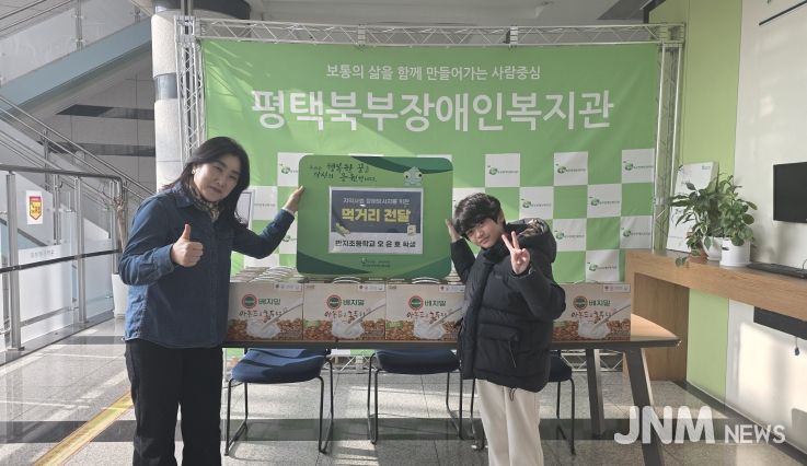 제이앤엠뉴스 | 평택북부장애인복지관은 1월 16일 14시, 이충동 반지초등학교 오윤호 학생으로부터 먹거리(두유 20박스)를 후원받았다.