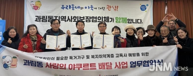 제이앤엠뉴스 | 시흥시 과림동 지역사회보장협의체는 지난 1월 19일 ㈜한국야쿠르트 역곡점과 복지 취약계층 안부 확인을 위한 ‘사랑의 요구르트 배달’ 사업 추진 업무협약을 체결했다.