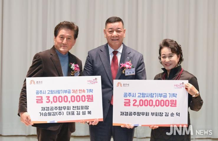 20일 공주시에 따르면, 김순덕 재경공주향우회 상임부회장과 김성복 전임 회장은 각각 200만 원과 300만 원을 기부하며 고향 발전에 대한 뜻을 보탰다.