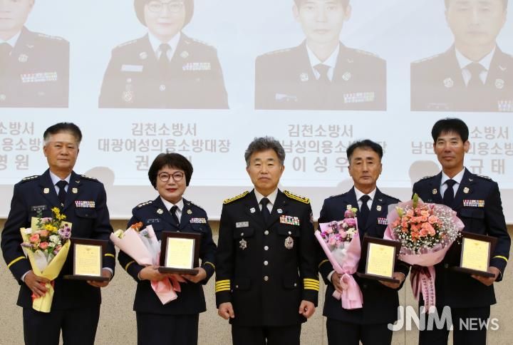 제이앤엠뉴스 | 김천소방서는 19일 대회의실에서 김천소방서 의용소방대 여성연합회장 임명장 및 퇴임 대장 공로패 수여식을 개최했다.