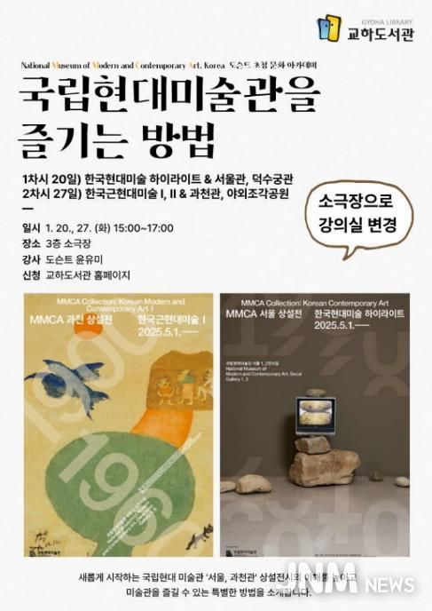 제이앤엠뉴스 | 파주시 교하도서관은 오는 20일과 27일, 15시부터 17시까지 교하도서관 3층 소극장에서 전문 안내원(도슨트) 초청 강연 프로그램 ‘국립현대미술관을 즐기는 방법’을 운영한다.
