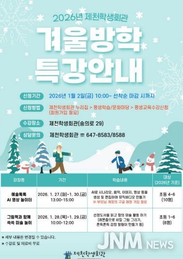 제이앤엠뉴스 | 제천학생회관은 겨울방학을 맞아 인공지능(AI)을 활용한 디지털 창작 활동 및 그림책을 연계한 미술 놀이 프로그램 등 창의·예술 체험 중심의 특별 프로그램을 운영한다.