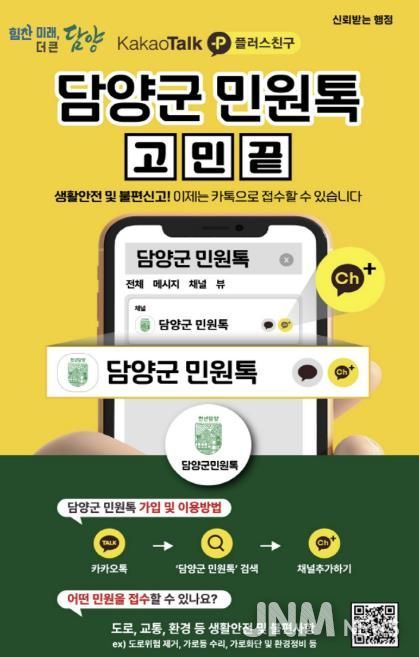 제이앤엠뉴스 | 담양군이 군민과의 소통을 강화하고 생활 속 불편과 안전 문제를 신속하게 해결하기 위해 카카오톡 채널 ‘담양군 민원톡’ 활성화에 나섰다.