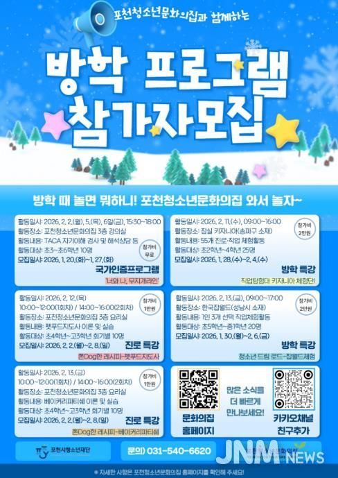 제이앤엠뉴스 | 포천시청소년재단이 운영하는 포천청소년문화의집은 청소년들의 진로 탐색과 창의 역량 강화를 위한 겨울방학 프로그램 참가자를 모집한다.