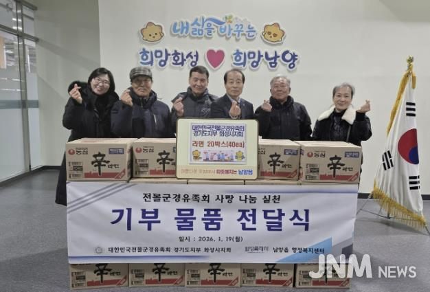 제이앤엠뉴스 | 대한민국전몰군경유족회 경기도지부 화성시지회가 지난 19일 남양읍행정복지센터에 지역 내 어려운 이웃들을 돕기 위한 라면 20박스를 기탁하며 따뜻한 나눔의 뜻을 전했다.