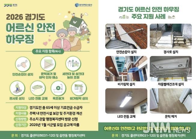 ‘어르신안전하우징’ 사업은 만 65세 이상 기초연금 수급자를 대상으로, 고령자의 주거 안전성 강화를 위해 가구당 최대 500만 원 이내에서 지원한다. 주요 지원 항목은 문턱 낮춤, 미끄럼 방지 바닥재 시공, 경사로 및 안전손잡이 설치 등이다.