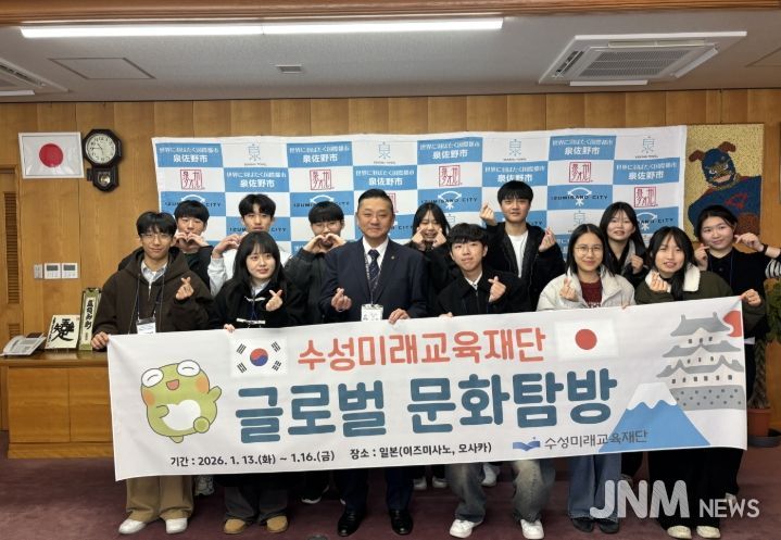 제이앤엠뉴스 | 대구 수성미래교육재단은 지난 13일부터 16일까지 수성구 고등학생 12명을 일본 이즈미사노시에 탐방단으로 파견해 글로벌 문화 탐방 프로그램을 운영했다고 밝혔다.