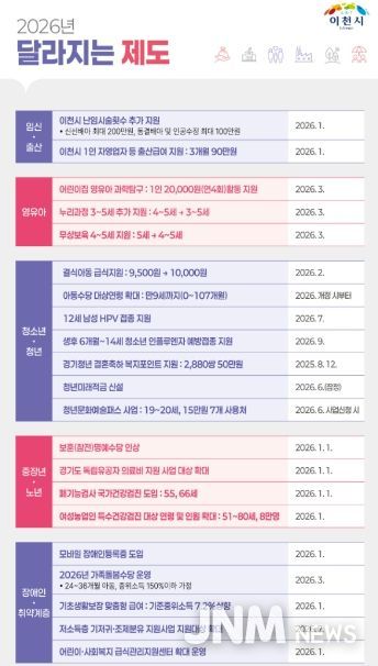 제이앤엠뉴스 | 이천시가 2026년 새해를 맞아 시민 생활과 밀접한 달라지는 제도를 발표했다.